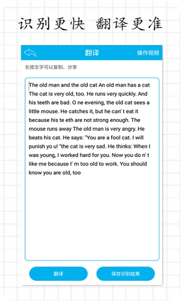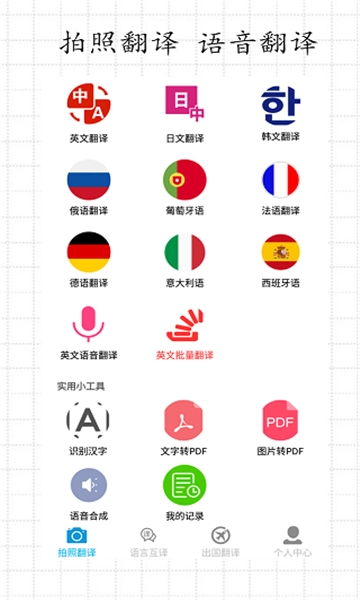 拍照翻译:强大的拍照翻译功能,一拍即译,无需手动输入便可快速翻译英语、日语等多种语言,满足出国翻译、旅行翻译、旅游购物翻译、英语学习翻译等需求。