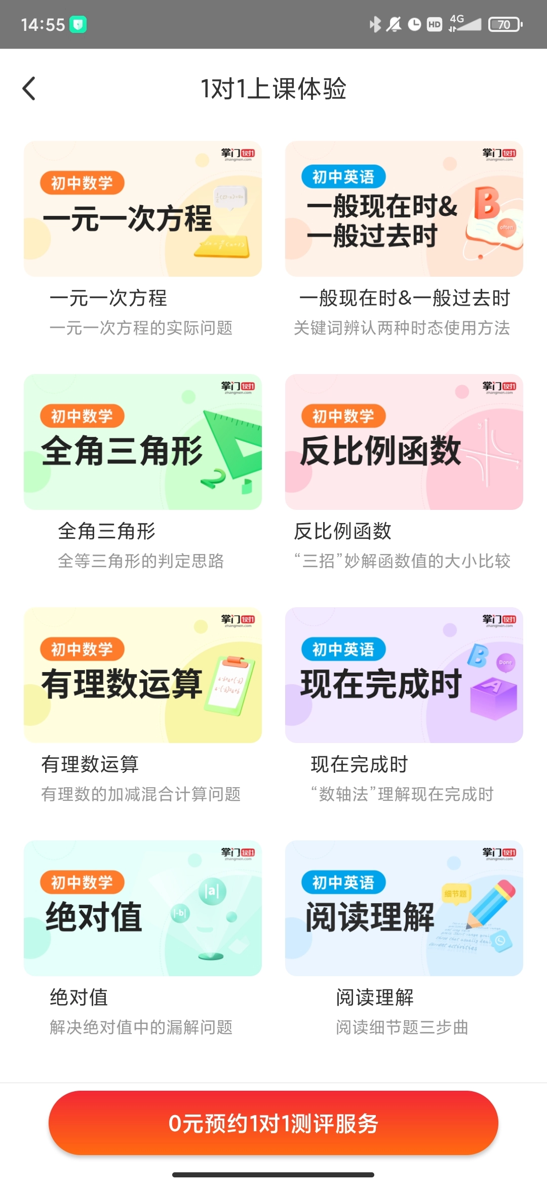 4.应用开设了0元试听课程。学生在报名掌门1对1课程之前都可以免费听一节掌门名校老师的课程。