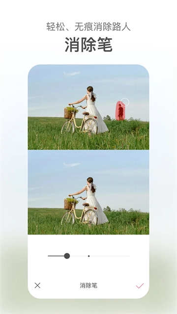 就算你是素颜也不用担心拍照,一键美颜就可以变身时尚达人。