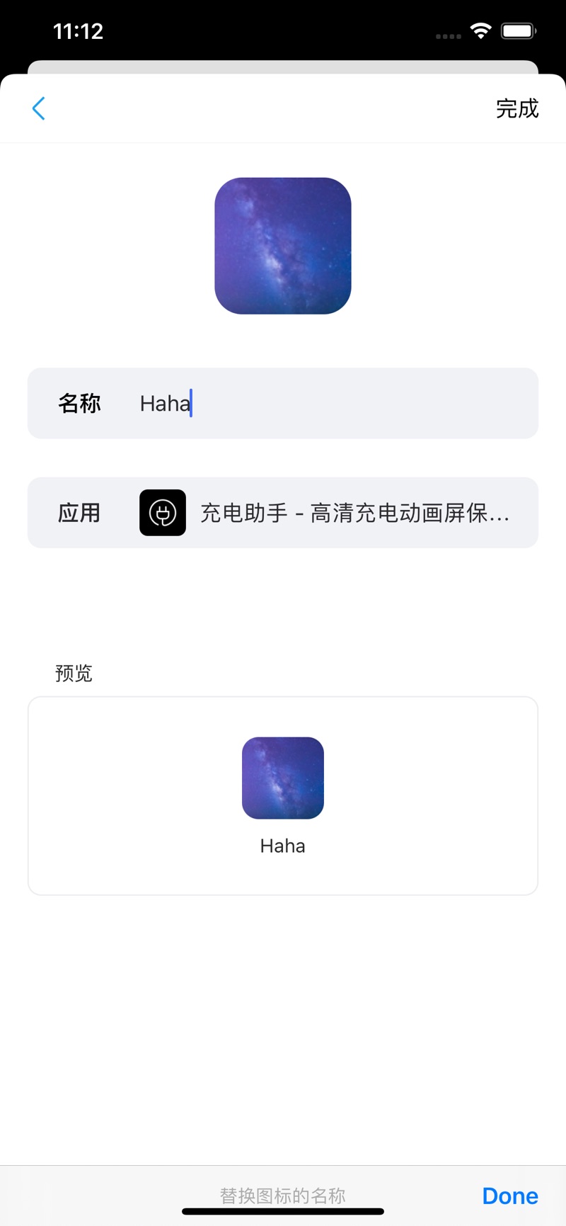 2. 点击"+", 并输入图标在桌面显示的名字, 随后点击 "+" 选择它的新图标