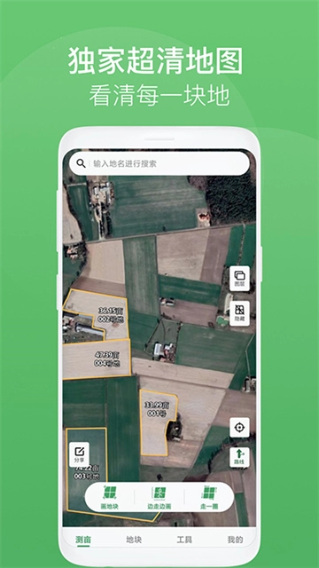 2、精准度到0.01亩,卫星地图高清,能够看清每一块土地,全部自动化测量,一键操作搞定;