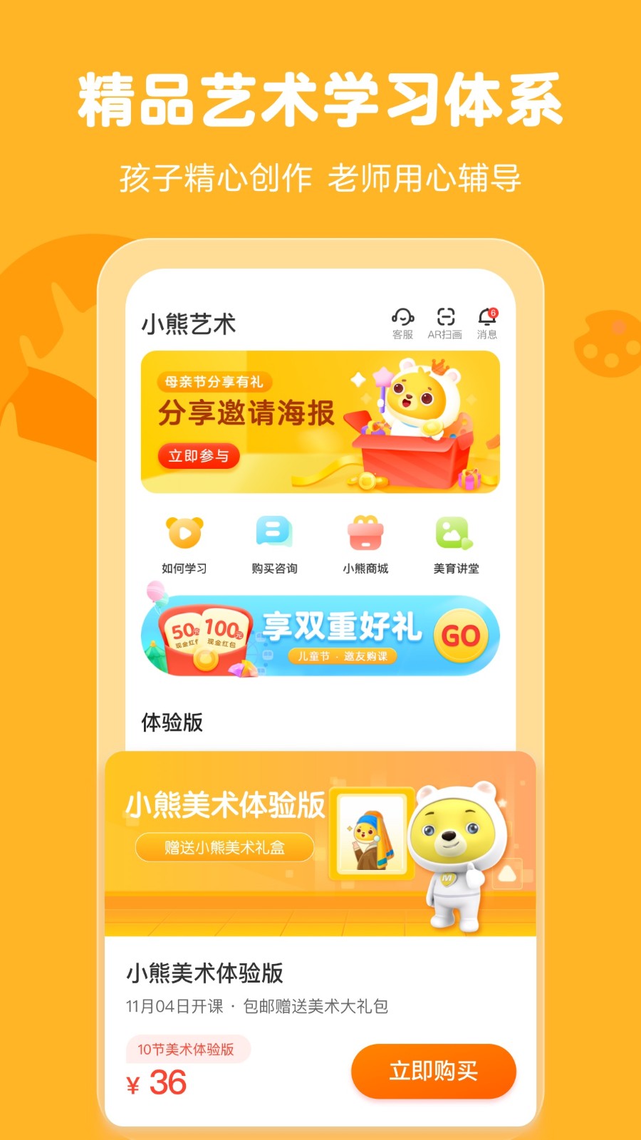 小熊美术培训,精品艺术学习体系,独家艺术团队重点提供,丰富有趣的学习内容,激发孩子的绘画天分,精心创作,用心指导,每天十五分钟就可以逐渐让孩子长成艺术家。多维度的教学形式,帮助孩子快乐成长。51苹果助手提供小熊美术app下载安装。