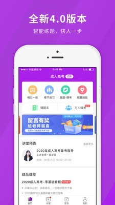 优质的成人高考学习app,用户足不出户就可以高效的进行学习练习,在线刷题更加简单,还有详细的试题解析为用户提供!