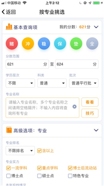 专业优先填报:结合目标专业、成绩、筛选出最匹配、最精确、最合适您的院校。