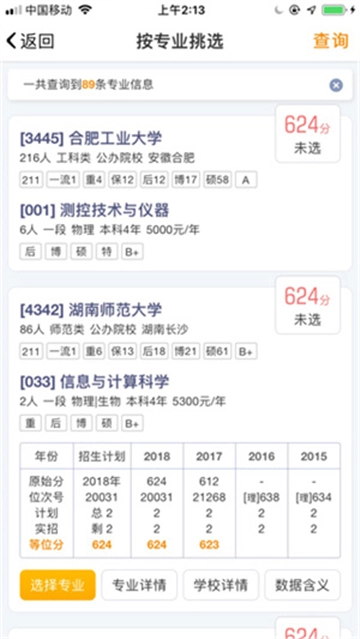 4、*直接点击就可以了解详情,同时可以选择比较满意的专业。