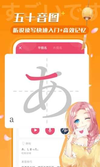 1、五十音真人发音,搭配发音技巧,支持录音跟读,轻松入门没难题。