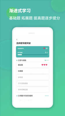 同步跟进课堂进度,按照孩子课前预习课后巩固,同步整理全科知识点背诵,初中生物课堂重点、难点、要点统统拿下,家长无需为孩子课后复习担忧,打开背诵模式,轻松get所有知识点,学习好玩又简单!
