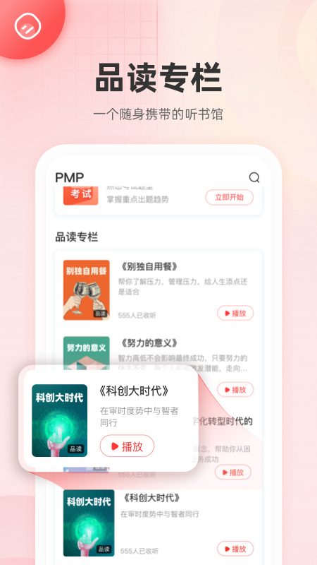 PM圈子是一款免费的学习备考软件,专注于为学习项目管理的人士提供帮助。该应用提供了广泛的学习资源,包括视频、音频、文章以及模拟考试等。此外,PM圈子还提供了在线论坛和指导服务,以帮助用户更好地学习和备考。该应用易于使用,是一个非常有用的工具,可以帮助您在项目管理领域取得成功。