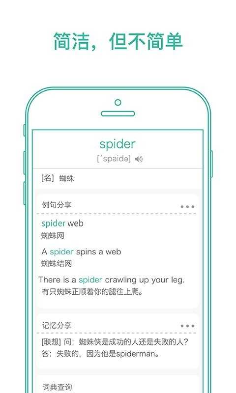 墨墨背单词,为每一个单词/词条都精心准备了简明扼要的解释、具意境的例句和优质的助记。单词/词条的收录规模,解释、例句、助记的精细度与全面度,都远超同类产品。