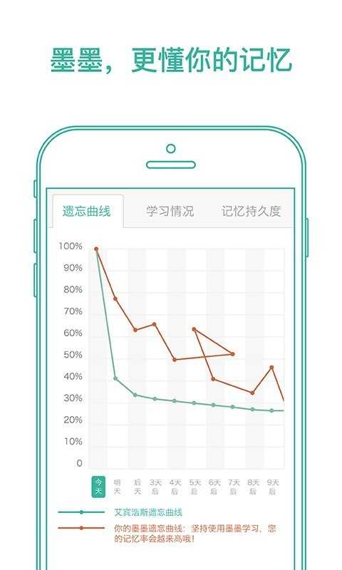 1. 遗忘曲线:真实反映了你在每个阶段对所学习单词的遗忘率;