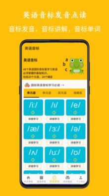 在学习的时候可以选择字母表,都能查看到每个音标的读法,这样在念单词的时候也会更加的轻松,让每个用户都能说出一口流利的英语,如果你也想要快速提高自己学习能力的话,就不要错过这款学习软件了。