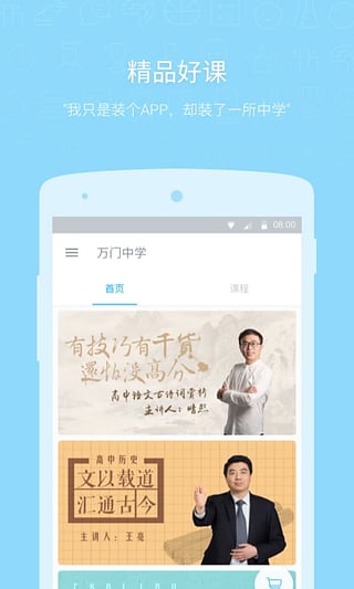 万门中学的课程录制立足于教育部的考试大纲和各种版本教材,涵盖教学大纲全部考纲考点,直击高考考点,对特别学科,我们还会有针对性的在线直播讲座和辅导,帮助学生取得更好的考试成绩!