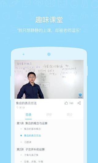 1、用户只要点击课程就可以清晰的看到课程的目录、评论,还可以把视频分享给自己的好友哦。