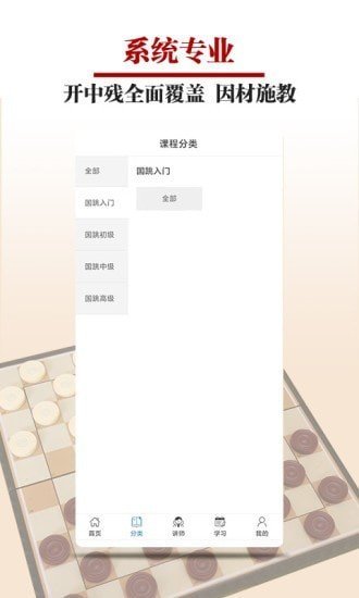 6、实用:针对业余国际跳棋爱好者量身定做,根据棋力评测等级选择,因材施教。每节课程20分钟左右,精简干货,适合现代人快节奏学习