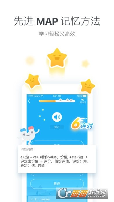 1、每天的学习都是通过闯关的方式进行,让用户可以在有趣的环境下快速记忆;