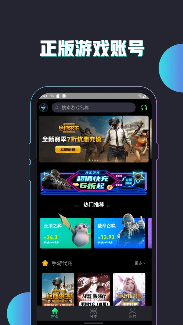 软件内具有游戏账号充值,账号交易和游戏购买等功能,在线可以快速使用;