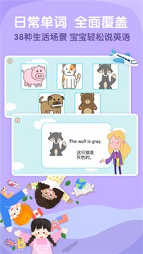 字母入门,词汇拓展,单词短句,视听素材,绘本读物,睡前故事,亲子情景对话一应俱全,多方位提升孩子听说能力。