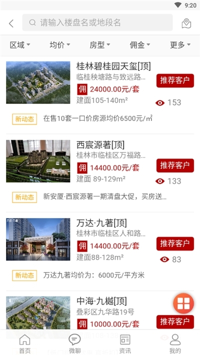 2、精准搜索:支持区域、价格、类型户型等多维度搜索高效找对房;