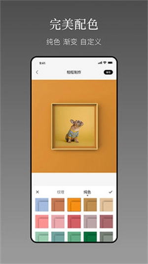 一副相框,面向诸位喜爱书法绘画的爱好者,为你们提供更专业高效、绿色优惠的装裱服务内容。随时随地可以在平台中自由选择素材,内外边框样式以及颜色都可以进行自由调整,外面的衬托卡纸也有27中颜色可以让你自由变换地进行选择。