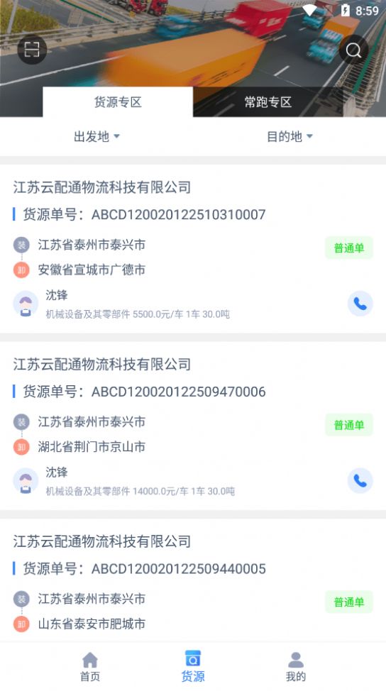 3.用户可以在这里找到各种各样的货源运单,快速了解各运单内容。