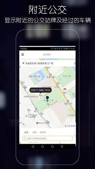 1、显示出附近的公交路线,还可以在线查询公交预计到达的时间和距离;