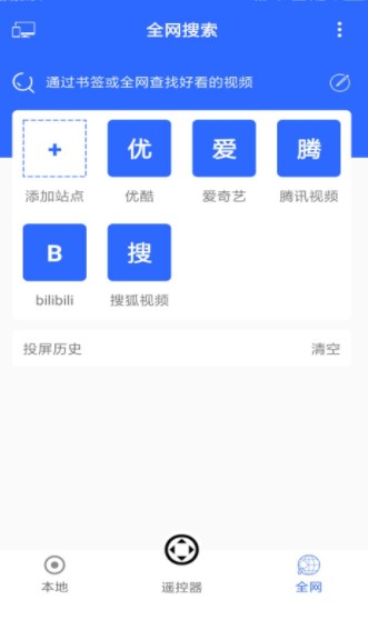 全网:可搜索网上视频,搜索的同时会检测到视频,只需点击投屏按钮即可大屏幕观看,支持各大视频网站