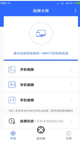 一键将手机里面的视频、图片、音乐投射到电视屏幕中。