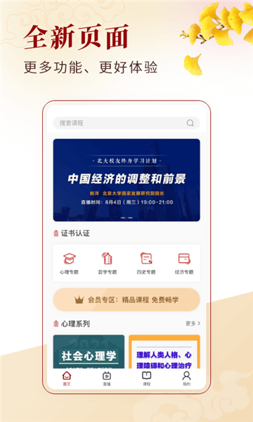 北大学堂是一款比较优质可靠的线上学习教育软件,告别传统书本学习模式的同时,还可以在这里了解多元化的学习内容,整个课程体系也是非常完善的,能够在这里感受到多层次的教学资料和教学体验,所有的课程大家也都可以免费去学习,线上还有专业名师为大家提供辅导,能够帮助大家解决更多的难题。