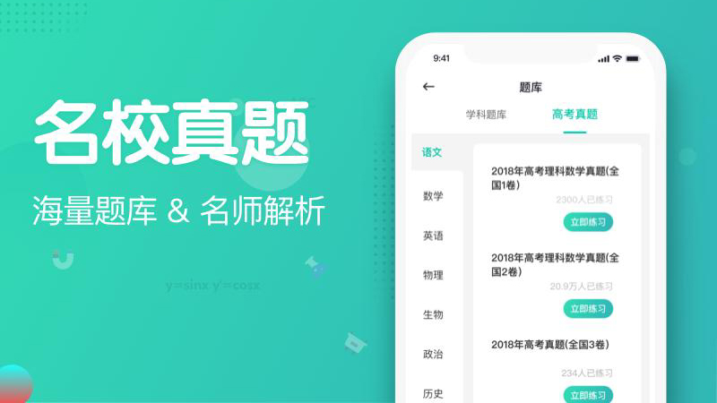 高考真题,用户在平台里面能够进行高考真题的练习;