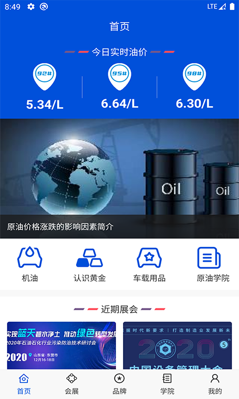 具有国家油价信息的实时查询,并提供丰富的石油展览信息;