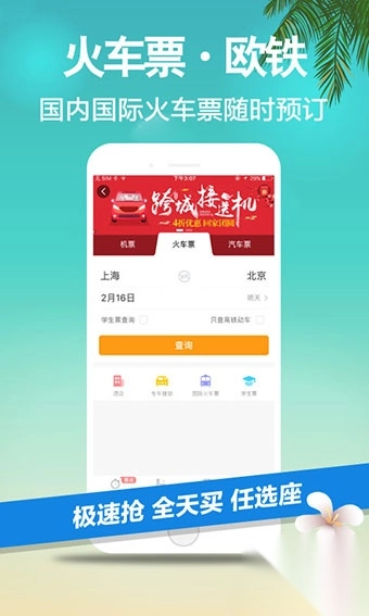 3、便捷式的接车服务,快速在线抢票,出行超方便简单化。