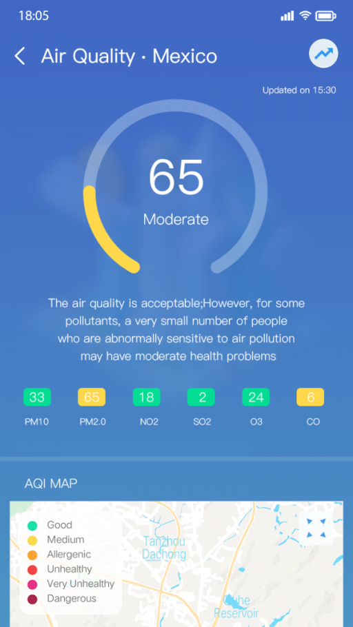 1、详细的空气质量可以在线管理,帮助您更好地为旅行做好准备,这样您就不必受到天气的影响。