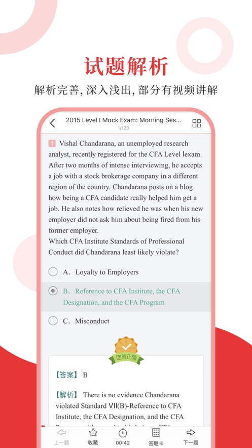 实用的CFA备考学习app,用户可以在线进行模拟测评,可以找出自己薄弱的知识点,能够做好充分的考试准备,轻松过考!