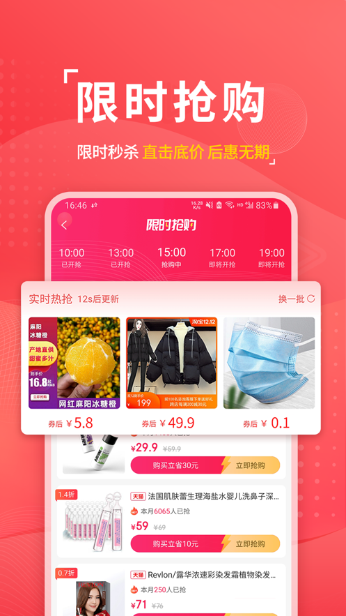 1、专享优惠券,每天更新,大额券仅限淘惠淘渠道,用券立减现金;