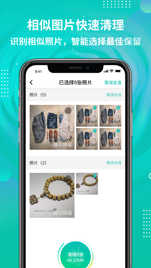 3、相似图片快速清理:识别相似照片,智能选择最佳照片,把最好的留给你!