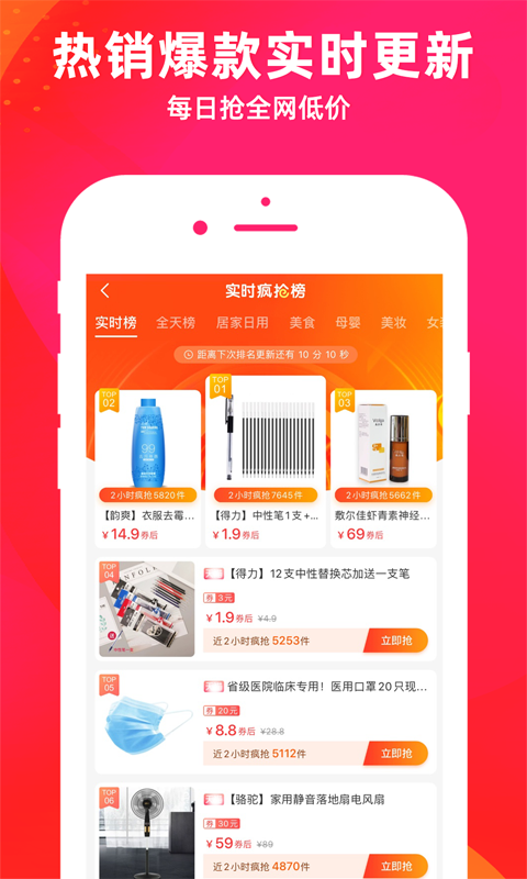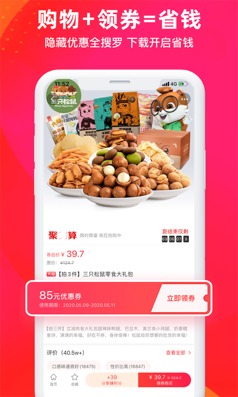 1.为您提供多家平台优惠券、限时抢、9.9包邮等多种省钱购物方案;