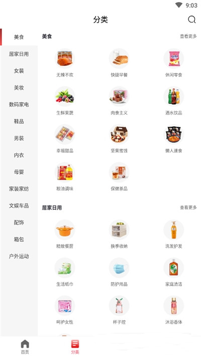 2、海量商品质量有保障,价格实惠,还有各种优惠券可以领取抵扣,将所有商品进行了详细分类;