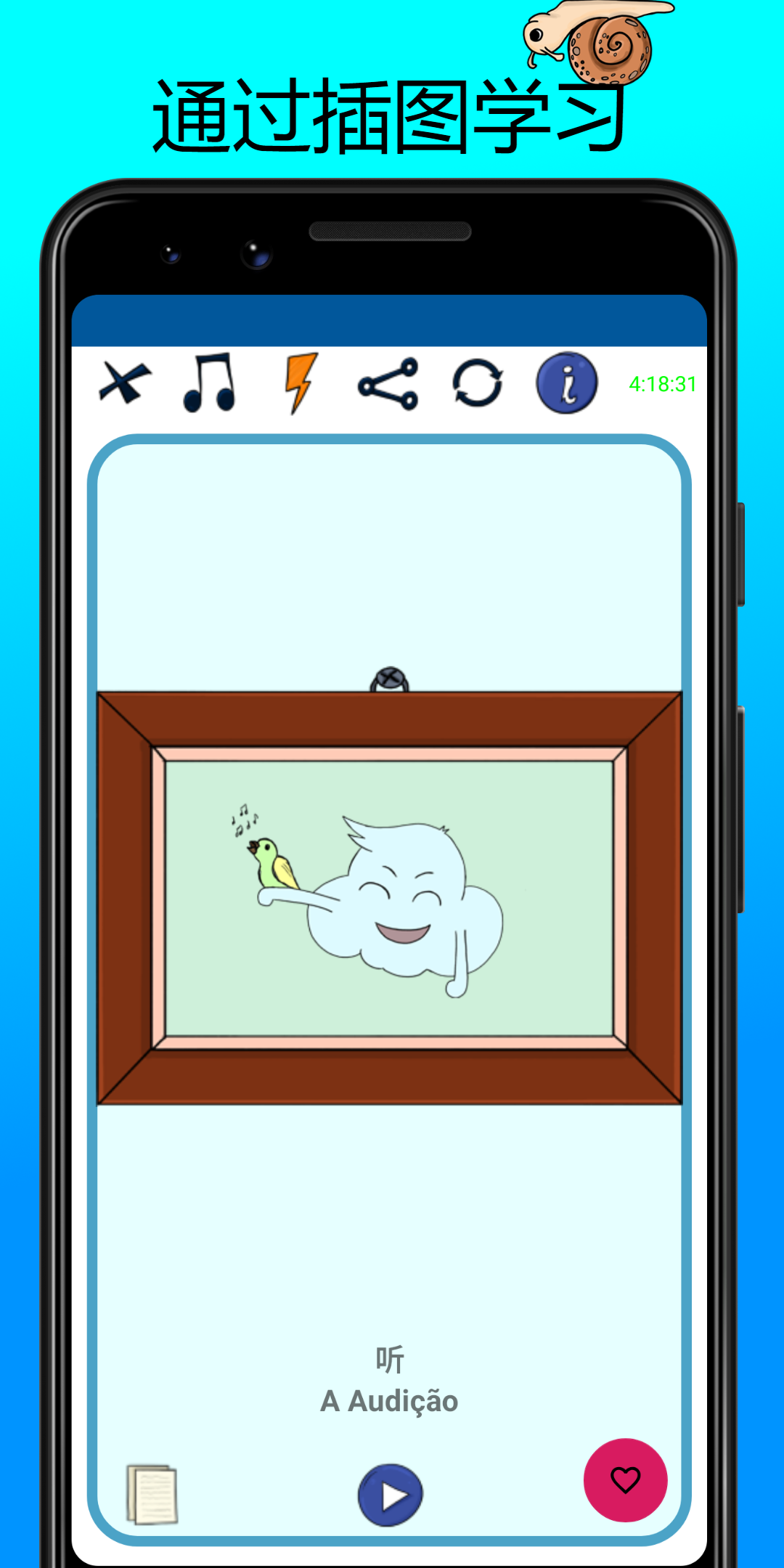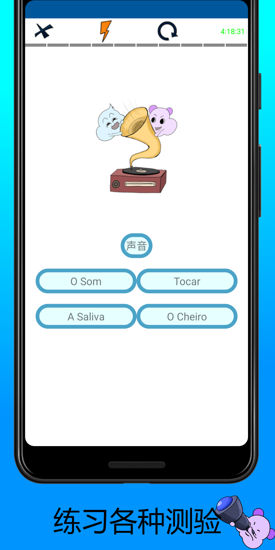 听音辨意、听音选词、听音写词、单词拼写、听音速记等专为葡萄牙语学习者设计的复习方式,寓教于乐,让葡萄牙学习不再枯燥。