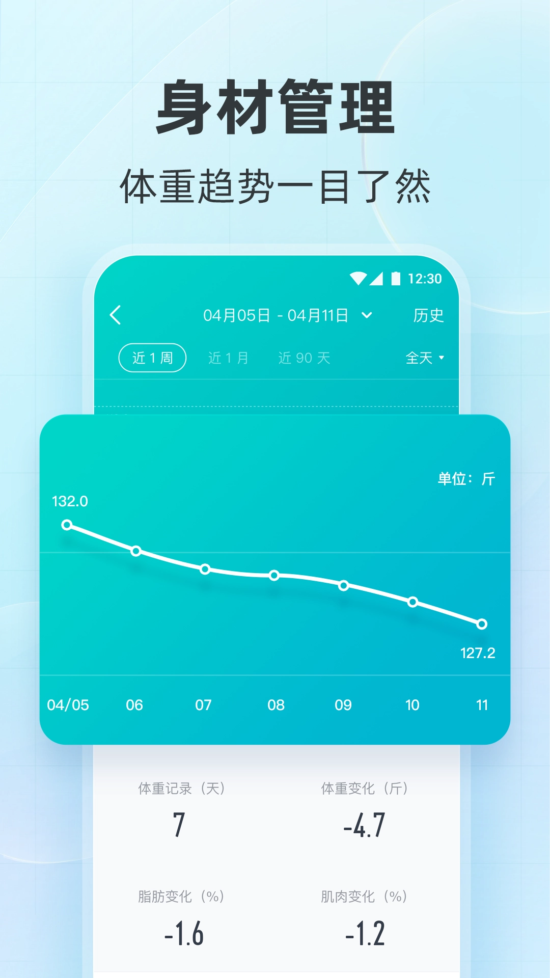 1、支持与多种品牌的智能秤连接,自动同步用户的健康数据。