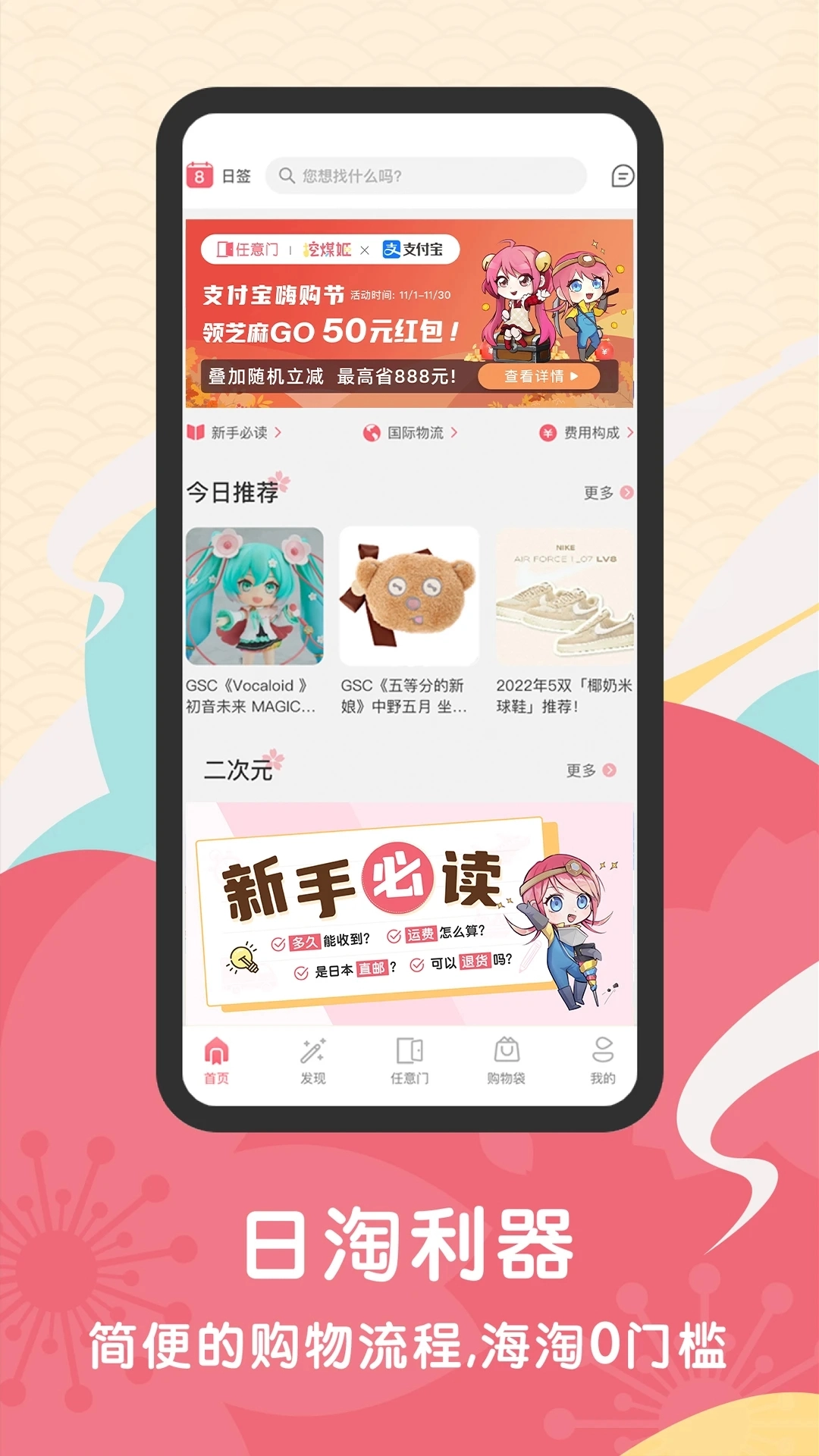 商品与日本实时同步,一键轻松下单。所有商品无需经过国内中转,直接从日本发货到家。仅需通过支付宝支付商品原价与运费,即可淘到心仪好物!