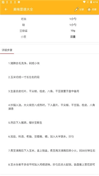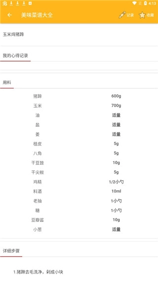 4、点击“玉米炖猪蹄”,此时小编想要了解玉米炖猪蹄的制作方法。