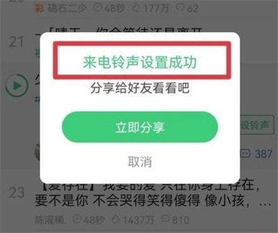 5. 最终会弹出一个显示“来电铃声设置成功”的窗口。