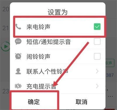 4. 随即会弹出一个设置窗口,在窗口中勾选“来电铃声”选项,之后点击“确定”按钮。