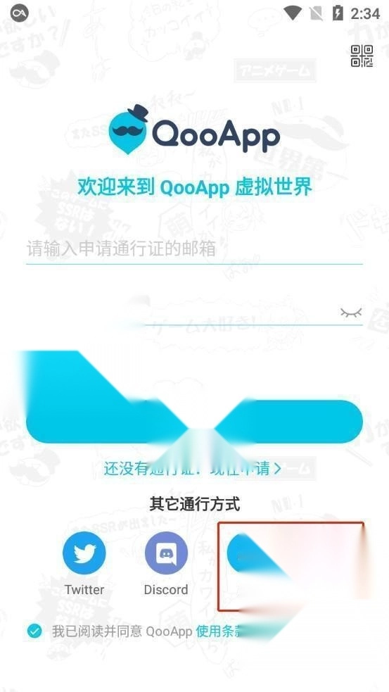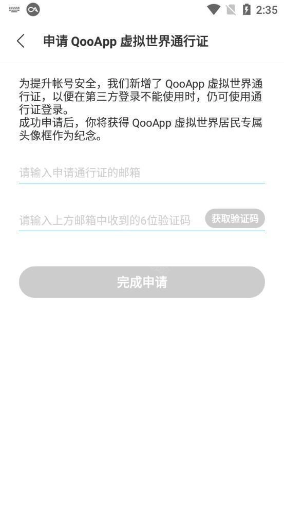 2、当您点击游客登录按钮,就会被重定向至该页面。此时,您可点击左上角的按钮回到主页面;另外,您还能申请Qoo虚拟世界通行证,仅需填写以下对应信息即可。