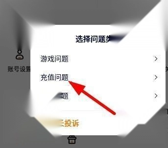 3、从中选择类型为“充值问题”。