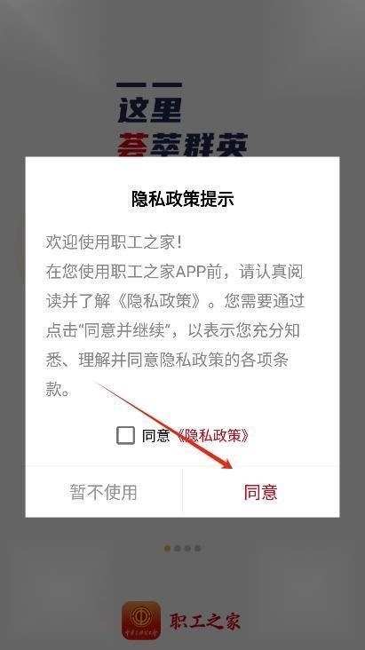 2. 进入之后,阅读并同意职工之家的用户协议。