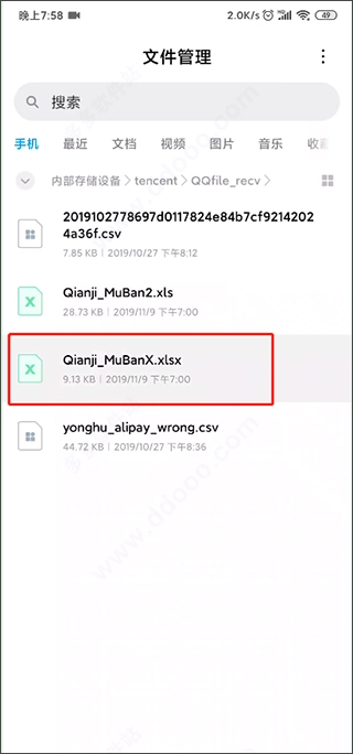 1、将该平台的账单文件,放入到手机SD卡中,目前只支持 Excel 或者 CSV 格式的文件