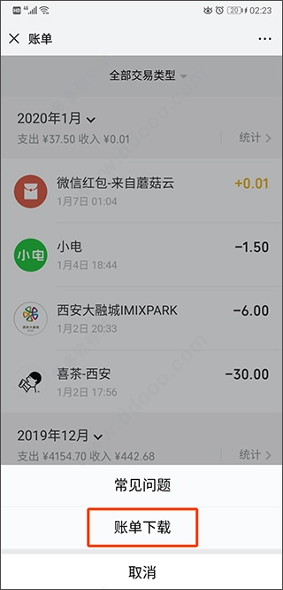 4、等账单列表加载完毕(注意:一定要页面加载完毕),点击右上角的 ... 按钮,弹出选项弹窗,然后点击 \\"账单\\" 选项