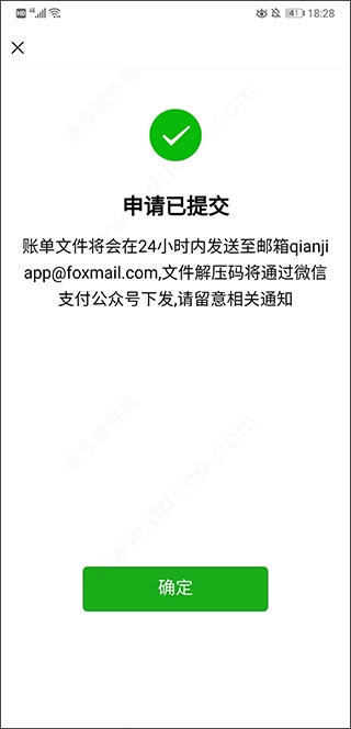 7、输入你的邮箱,微信会把账单文件发送到你的邮箱
