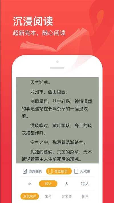 全新上线定时听书功能,海量音色随心挑选,全本缓存支持离线畅读,为您带来酣畅淋漓的阅读感受!更有多种翻页设置,看书翻页如行云流水般顺畅。页面设计简洁大方,夜间护眼模式一键开启,阅读体验再升级。